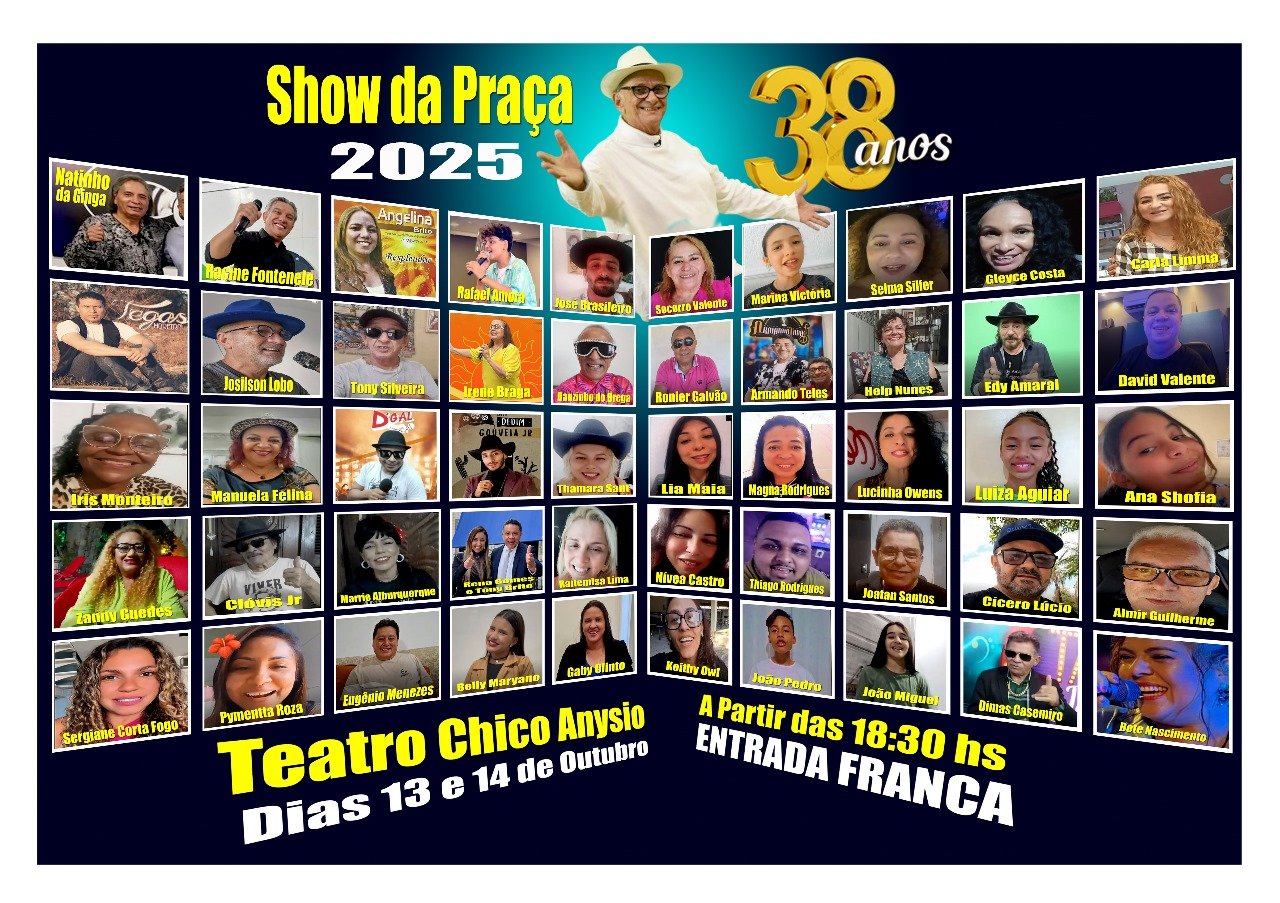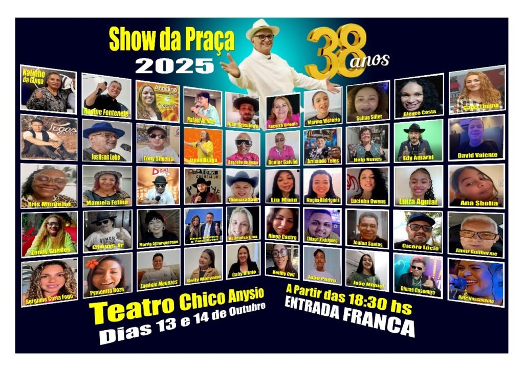 Nos próximos dias 13 de 14 de outubro, o apresentador Eduardo Praciano realiza um evento em comemoração aos 38 anos de Show da Praça, um projeto para descobrir novos talentos e que, ao mesmo tempo, se tornou uma espécie de sala de aula e de laboratório para ajudar pessoas que tinham talentos, mas que não se expunham por timidez ou por medo de enfrentar o público.