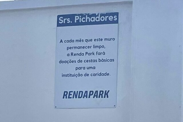 “A cada mês que este muro permanecer limpo, o Renda Park fará doações de cestas básicas para uma instituição de caridade.”