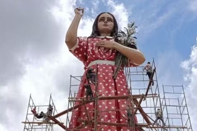 A nova estátua da beata Menina Benigna teve sua construção finalizada em Santana do Cariri, no Cariri cearense, e deverá ser inaugurada em janeiro de 2026. Nessa sexta-feira, 26, os trabalhadores responsáveis pela obra participaram de um momento de oração e bênção aos pés do monumento, marcando simbolicamente o encerramento da etapa principal do projeto.