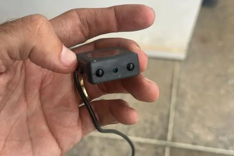 O dispositivo foi localizado após uma mulher perceber a presença de um objeto eletrônico suspeito acoplado à luminária do teto do banheiro. Ao identificar a possível câmera, ela deixou o local imediatamente e acionou a Polícia Militar por meio do canal de atendimento via WhatsApp da base do Comando de Policiamento de Rondas de Ações Intensivas e Ostensivas (CPRaio).