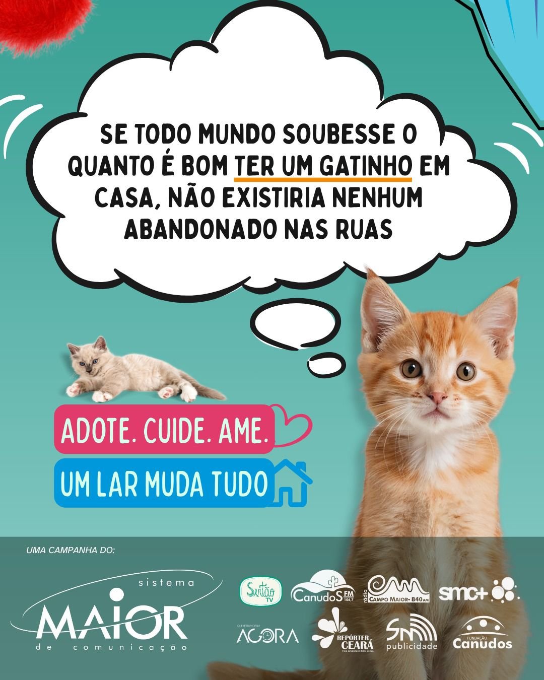Se todo mundo soubesse o quanto é bom ter um gatinho em casa, não existiria nenhum abandonado nas ruas. A frase, simples e direta, carrega uma verdade que emociona e provoca reflexão. É com esse espírito que o Sistema Maior de Comunicação dá início a uma nova campanha de conscientização, colocando em pauta uma realidade que ainda insiste em existir: o abandono de animais.