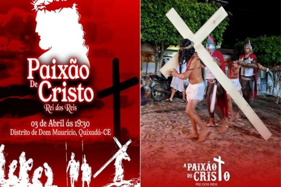 No distrito de Dom Maurício, ao redor da histórica Capela de Sant’Ana, o Grupo Cultural de Dom Maurício mantém viva a montagem ‘Paixão de Cristo – Rei dos Reis‘ há mais de 30 anos. A peça é produzida por voluntários locais e se consolidou como referência na programação religiosa do Sertão Central.