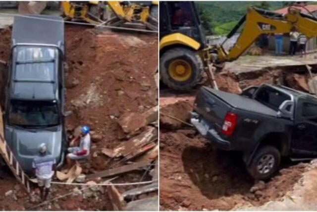 Para retirar o veículo da cratera, foram utilizadas duas retroescavadeiras. Após a remoção, a caminhonete foi encaminhada para uma oficina por meio do seguro.