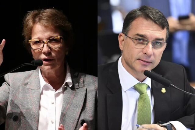 Ao ser questionado sobre a possibilidade de ter Tereza Cristina como companheira de chapa, Flávio Bolsonaro destacou a admiração pessoal e política pela senadora. Ele disse que costuma chamá-la de forma carinhosa e reforçou o respeito que tem por sua trajetória.